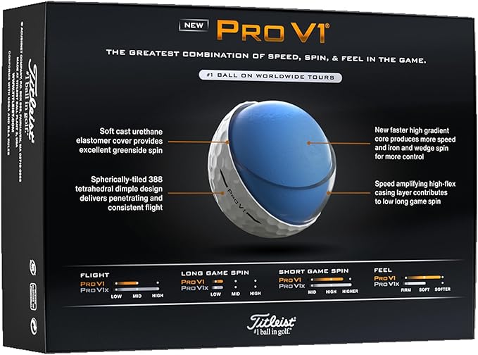 • Pro V1 has a softer feel, less spin and flatter trajectory than Pro V1x, which makes it the preferred model for players who like exceptionally long distance, the ability to flight shots, and score with precision and touch.