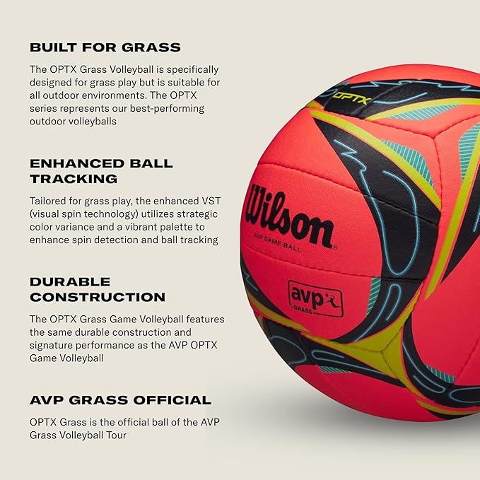 • DURABLE CONSTRUCTION: The OPTX Grass Game Volleyball features the same durable construction and signature performance as the AVP OPTX Game Volleyball.